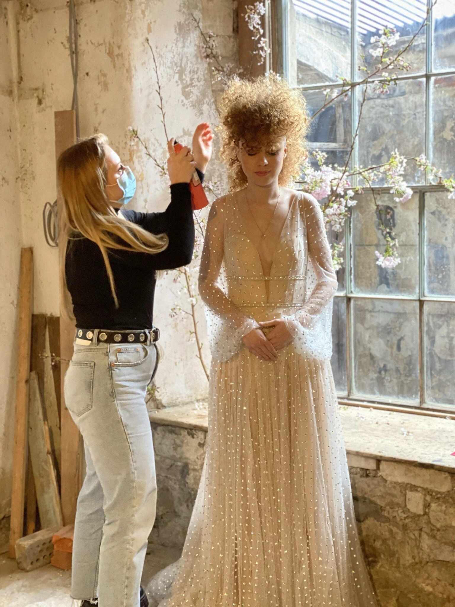 The beautiful model for the day was Thea, who travelled to us in the morning from Wales. Her look was perfect for the concept of this styled shoot. She was able to look edgy and rebellious as well as ethereal and delicate. Our particular favourites are of her downstairs in our venue in front of the old window.