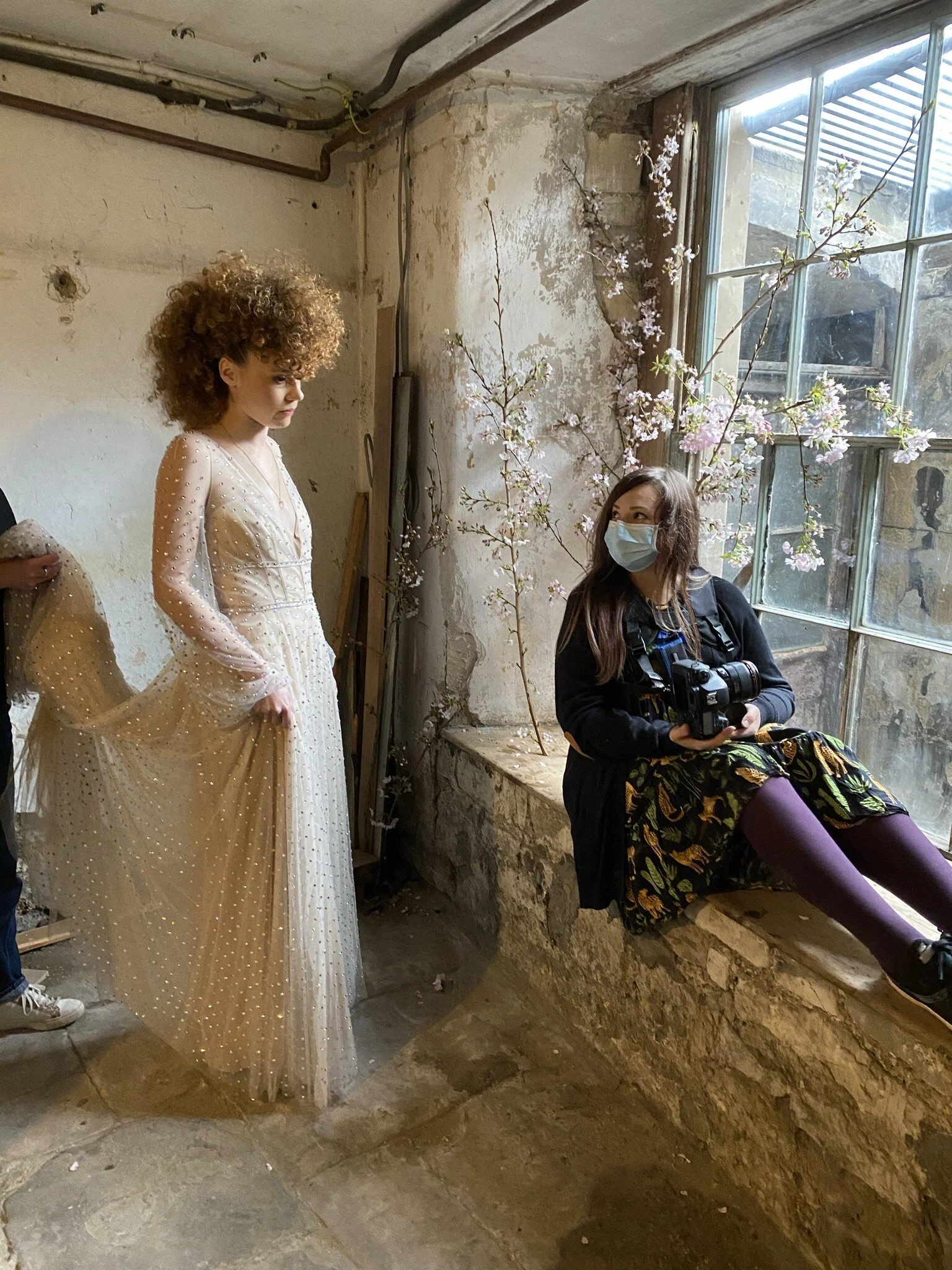 So on a freezing cold, windy Sunday we set about realising Emma’s vision. Many cups of tea, lots of mess, unwrapping of props, model arriving, make up and hair being done, flowers being put together, sandwiches being eaten, photos being taken, lots of laughs followed by exhaustion and this is what happened…